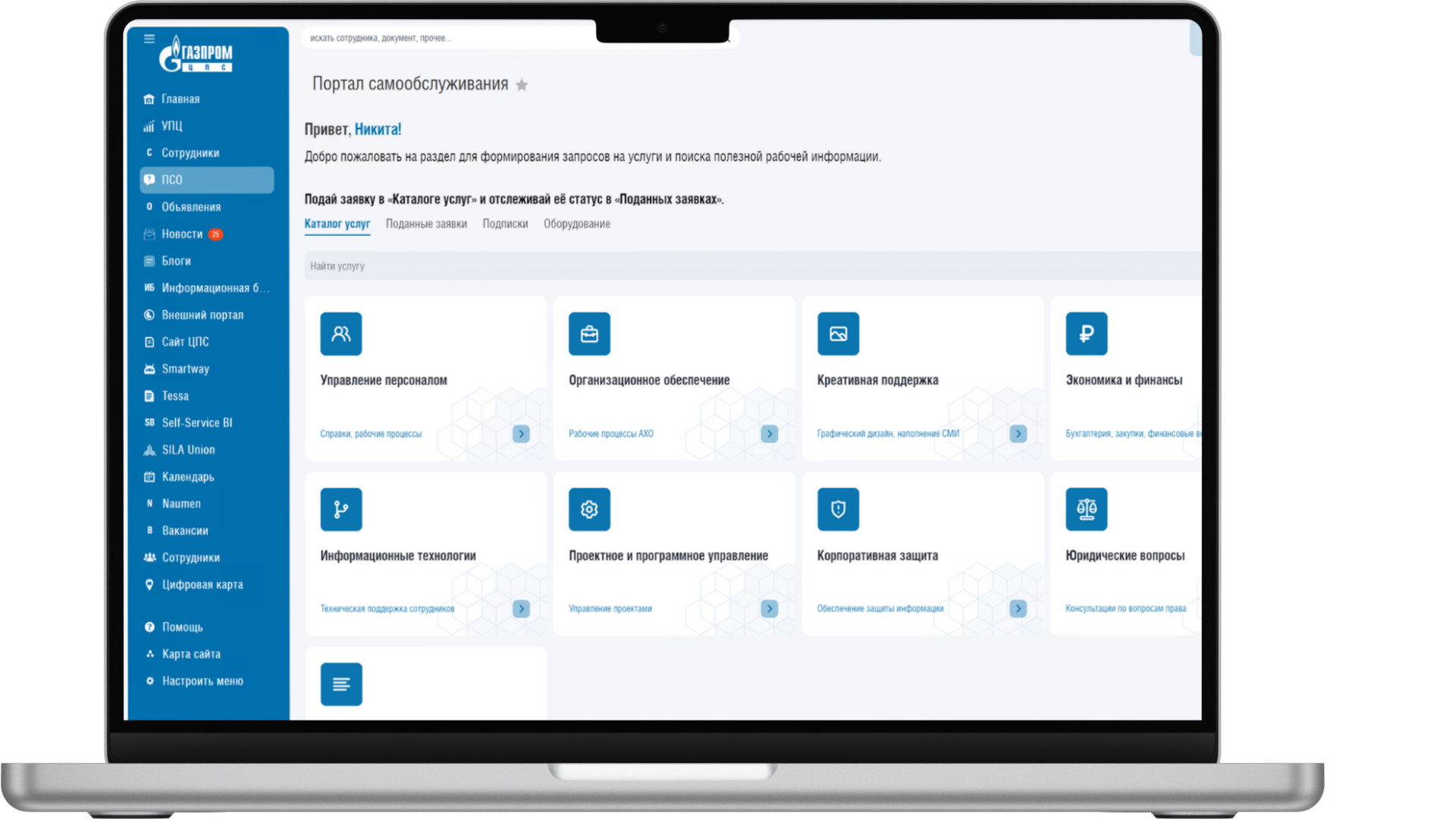 Система компании для работников с цифровизацией основных бизнес-процессов – специализированный инструмент для создания единого пользовательского окна для подачи и обработки обращений работников на получение информации и услуг из разных подразделений по внутренним сервисам.